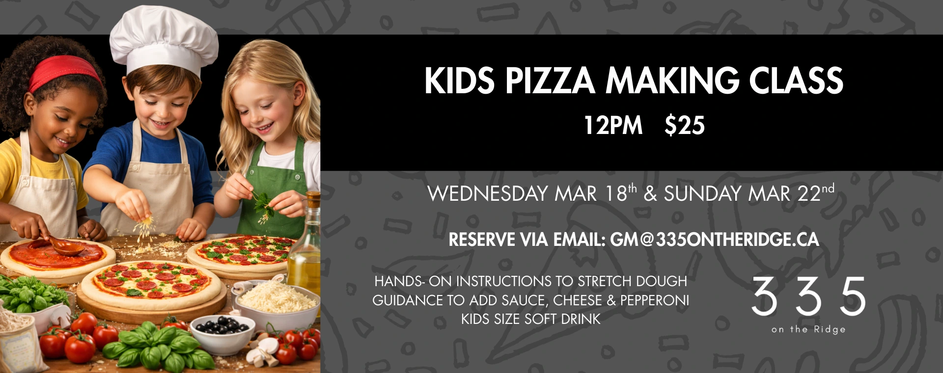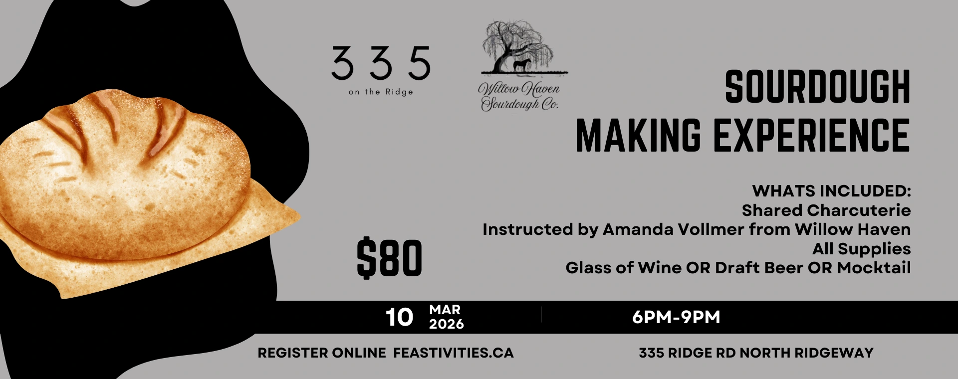 At 335 on the Ridge, our skilled chefs artfully craft a menu featuring the freshest ingredients from local Ontario farms. We're committed to showcasing organic, local produce, bringing the very best of Ontario's bounty directly to your table. Discover an array of gourmet dishes, unique salads, satisfying burgers, sandwiches, and pizzas, all thoughtfully presented on our delicious homemade sourdough bread.
